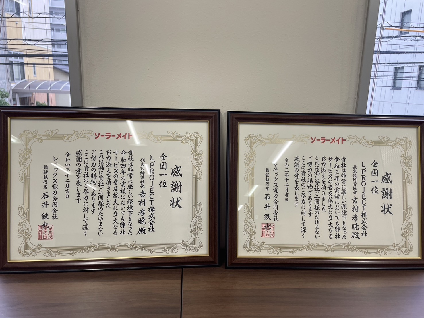 2021年・2022年提携サービス(名称:ソーラーメイト)で、2年連続で全国1位を獲得。弊社の営業力が高く評価された証です。