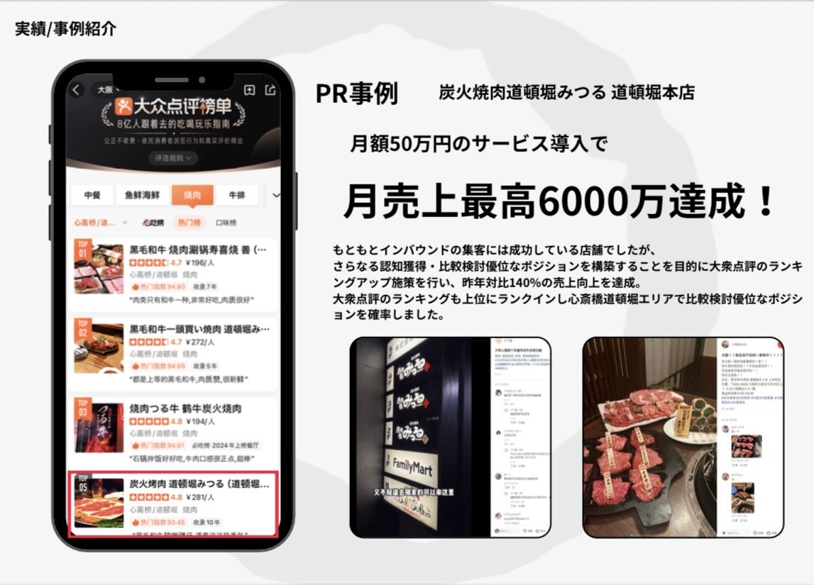 もともとインバウンド集客に成功していた店舗でしたが、さらなる認知拡大と比較検討における優位性の確立を目的に、大衆点評でのランキング上昇施策を実施。