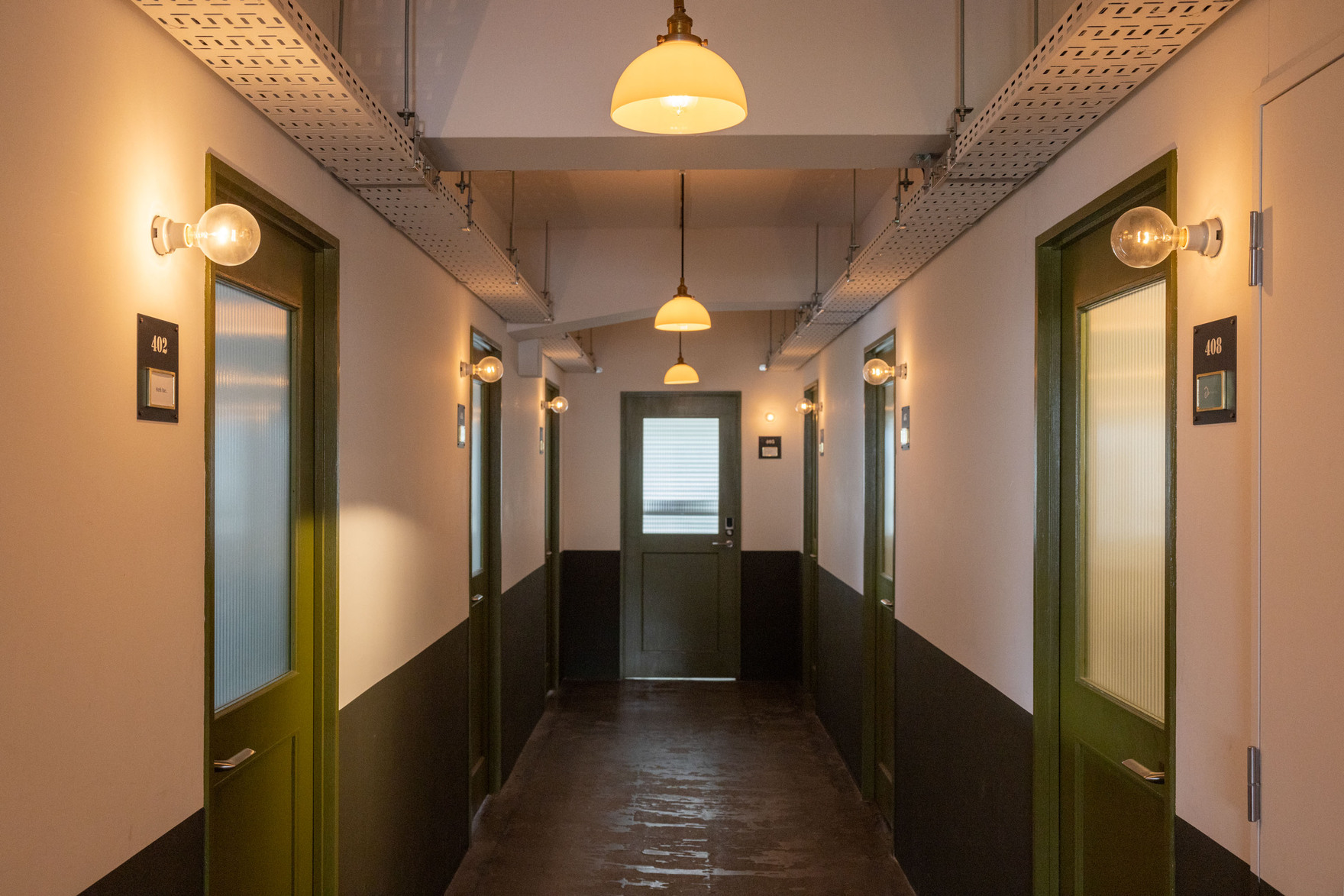 エレベーター無しの5階建て、倉庫兼事務所ビルを、クリエイターが集う複合施設へリノベーション。エレベーターやシャワールームの新設も行いオフィスからなる複合施設へ刷新。