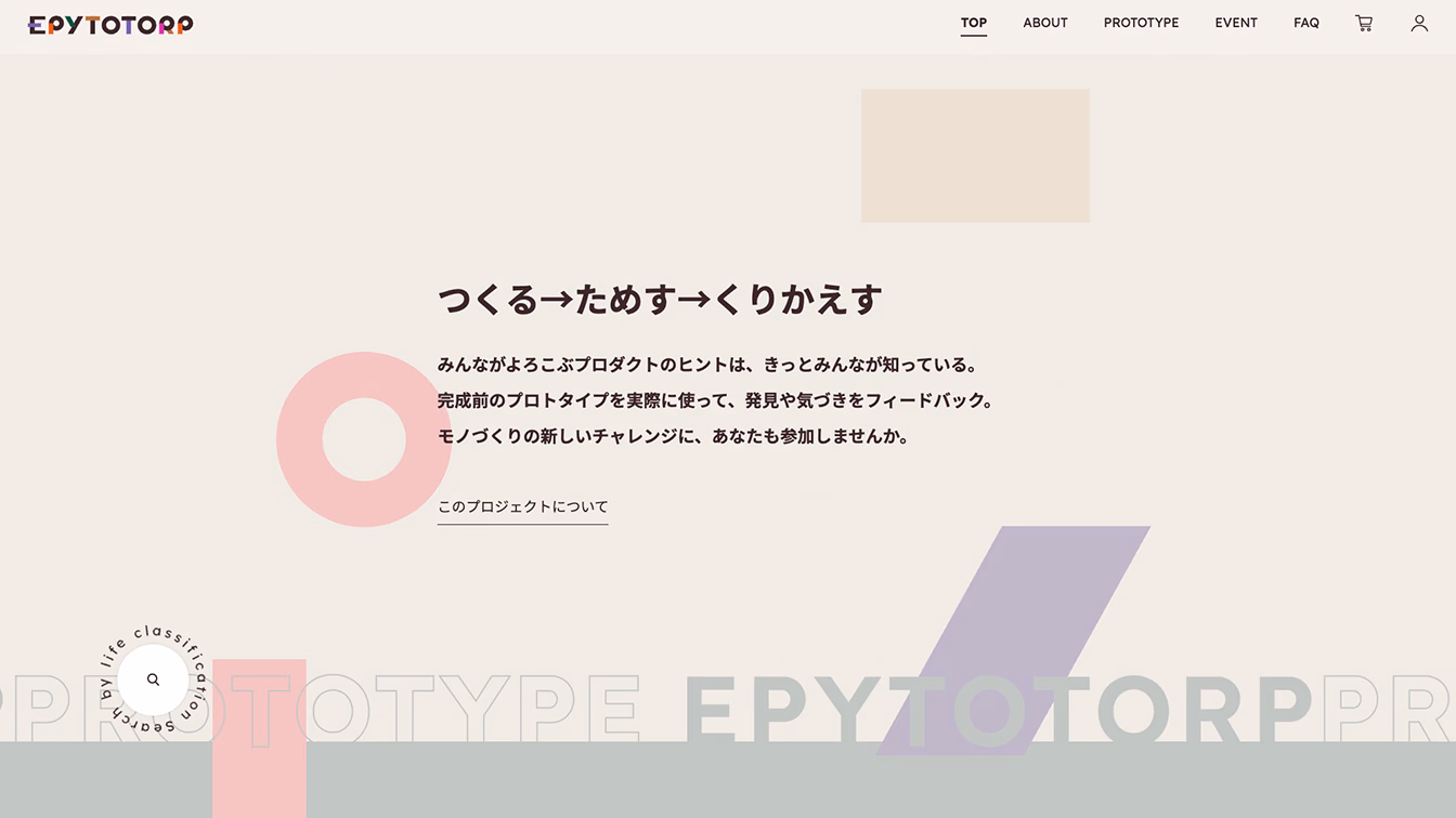 EPYTOTORP(エピトトープ)は、完成前のプロトタイプを生活者が暮らしの中でためし、そこで得たリアルな気づきをディベロッパーへ即時フィードバックできる、オープン・プロトタイピングコミュニティです。