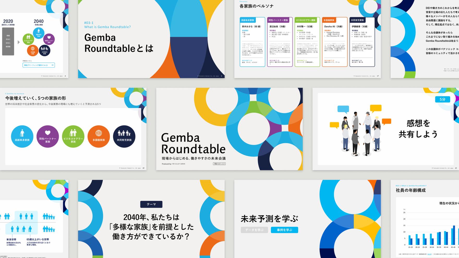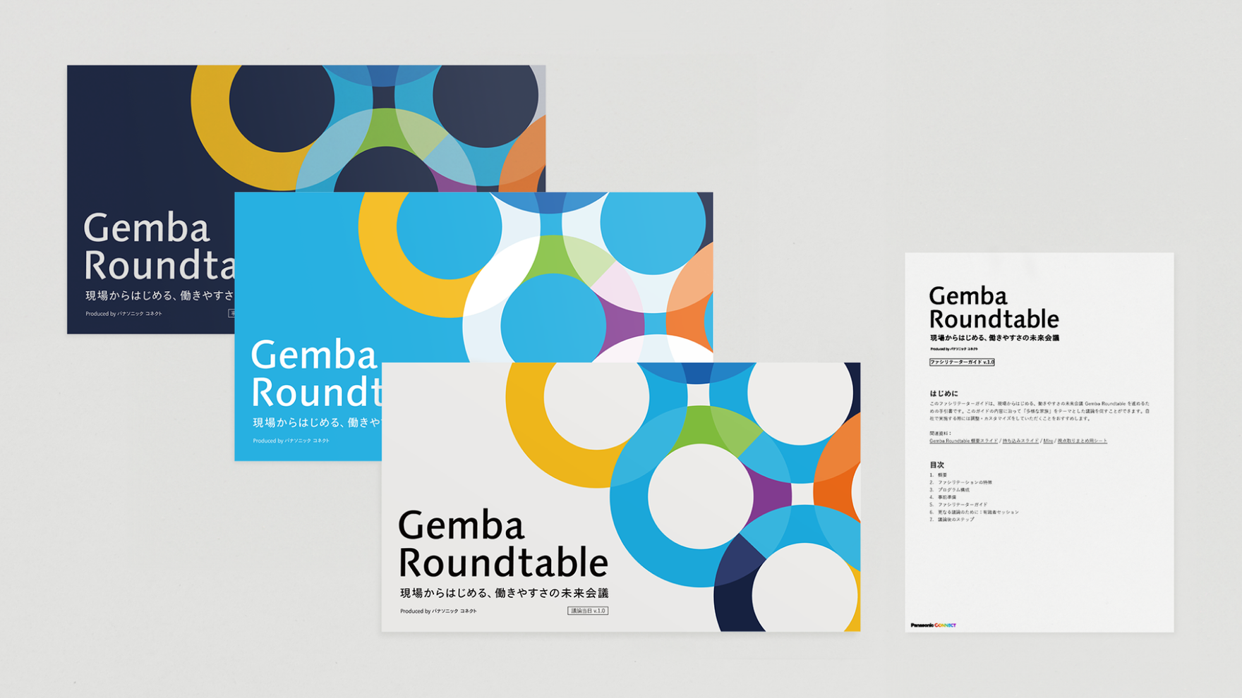 さらに、このプログラムを他企業でも活用できるよう、各種資料やファシリテーションガイドといったツールへと展開。前向きな意志を起点に、「Gemba Roundtable」が社会へ連鎖していく様子を記号的なビジュアルで表現しました。