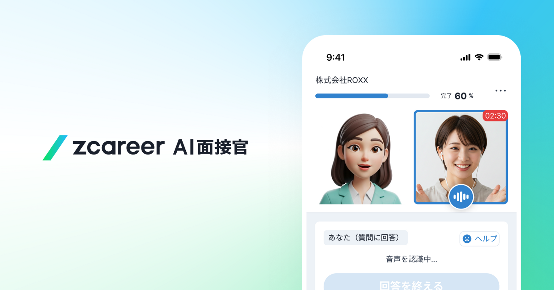 「Zキャリア AI面接官」は、候補者がスマートフォンひとつで24時間365日いつでも面接を受けられるサービスです。