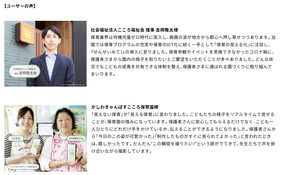 『せんせいみて!』は、保育園でのこどもの様子を保護者にリアルタイムで共有できるサービスです。