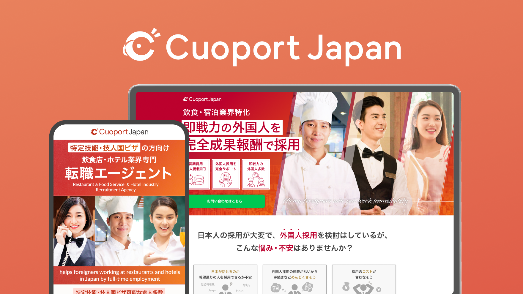 CuoportJapanでは、「採用が決定するまで費用は一切かからない」完全成果報酬型で、