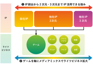 こうした強みを活かしながら、ゲームを軸としたIPプロデュースカンパニーとして、今後はゲームはもちろんのこと、IPの創出やメディアミックス展開を通じて、新しい体験を世界に届けていくことに挑戦していきます。