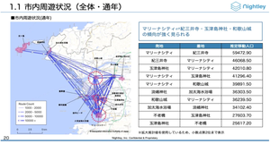 私たちナイトレイは位置情報データの解析を得意としており、コロナ禍前までは「観光地にどのような国籍の人達が来ているのか」などの情報を位置情報データから読み解き、地方公共団体やインバウンド対策を行う企業様に多くのサービスやレポートをご提供してきました。 そして今、コロナ禍において世界中で海外旅行のあり方が変化する中、ナイトレイの位置情報データを解析する技術で日本人の生活者・旅行者の行動データを分析し、観光領域のみならず、まちづくりやMaaS領域にも活かしています。 「ロケーションデータで人々の生活を豊かに、社会をよりスマートに。」というMISSIONの下、独自技術をWEBツール化し、ロケーションデータを手軽に活用出来るようにすることで、ロケーションデータ解析を通じた経済的な地域活性化を目指しています。
