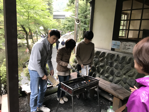 キャンプでは社長自ら火起こし頑張ります!(写真はコロナ前のもの)