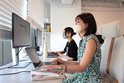 インターン生同士で分析のアドバイスをしている様子
