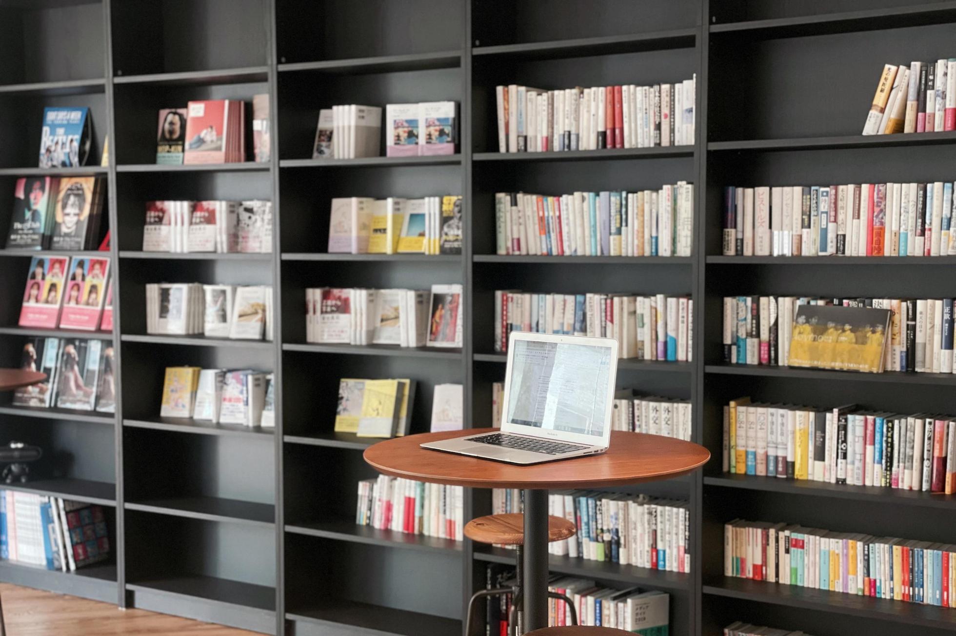ジャンルを問わず、多数の本に囲まれたオフィスです。オフィス内でインタビュー撮影なども行われます。