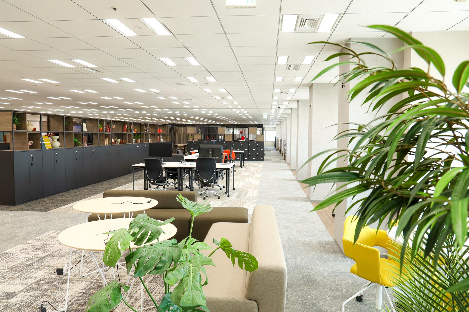 恵比寿駅から直結の29階のオフィスは日当たり最高。フリーアドレスで常に新鮮な気持ちで仕事に取り組めます。