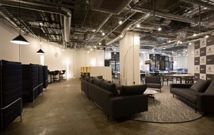「axle御茶ノ水」館内のコワーキングスペースやバー、テレフォンブースを自由に使用できます。コーヒーやお水などが無料で飲めます。
