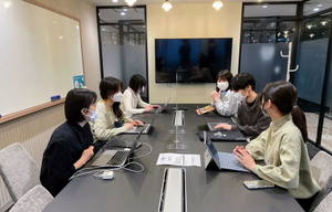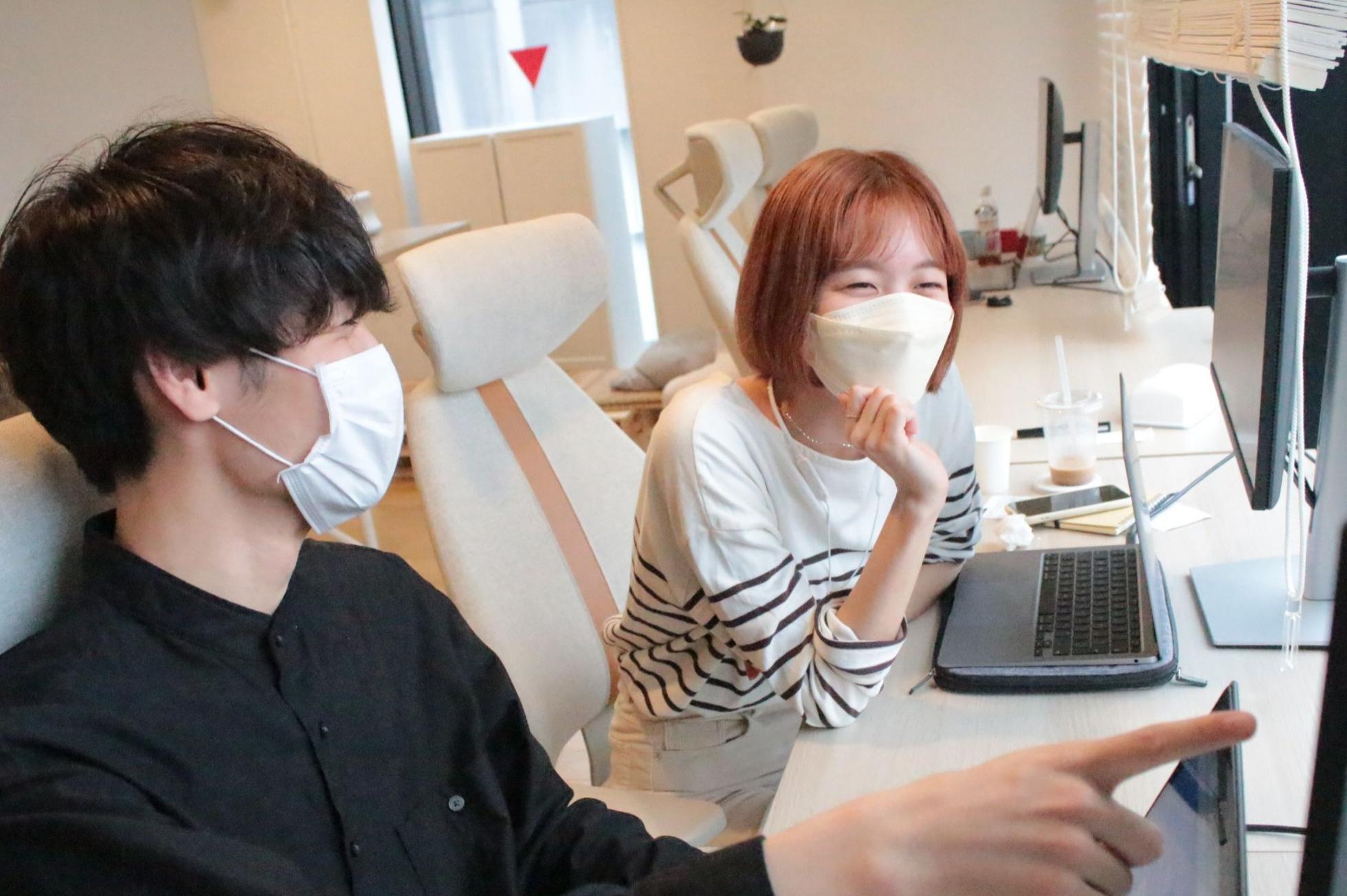 インターン生同士で分析のアドバイスをしている様子