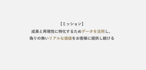 ミッション:成果と再現性に特化するためデータを活用し、偽りの無いリアルな価値をお客様に提供し続ける