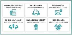 社会人メンター制度やinteeキャリアワークショップなどを通じて、就活生は自己理解を深め、見出した本質的な意志で企業と繋がることをサポートするサービスです。