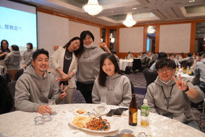 会社方針説明会+パーティーを行いました。全社員が一箇所に集まり、チームアップしました!