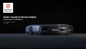 倉庫内で稼働するGeek+の棚搬送型AGV「EVE」。国内で既に2,000台を超えるAGVを導入実績。通常1人1時間あたり50点程度のピッキング作業が限界のところ、EVEを使うことで、250点以上のピッキ当社の新型AGVが、日本のグッドデザインを賞受賞(2022年10月)。物流現場では、作業生産性を1%向上させるのに必死、EVEによる二桁台の生産性UPは、業界におけるゲームチェンジのチャンス到来です。今後、確実にこのような自動化が加速します。その中で将来広がる事業を、AGV販売に加えスタートしていきます。