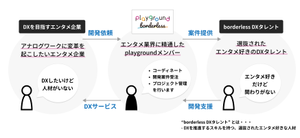 スポーツ・エンタメ業界を熟知したplaygroundの社員がプロジェクトマネージャーとして責任を持って、borderless登録メンバーと共にプロジェクトを遂行していくシステム