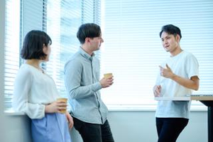 ワンフロアのオフィスで、他部署や経営層にも気軽にコミュニケーションを取ることができる雰囲気です