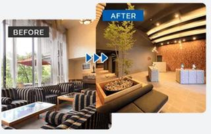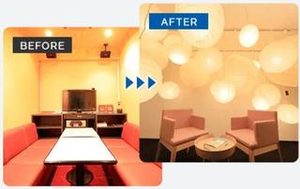 使われなくなった旅館のカラオケルームを、落ち着きのあるライブラリールームへ