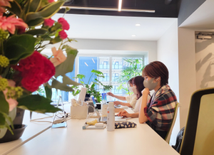 2022年8月にオフィスを移転しました。明るく緑の多いオフィスでフレキシブルな働き方が可能です。