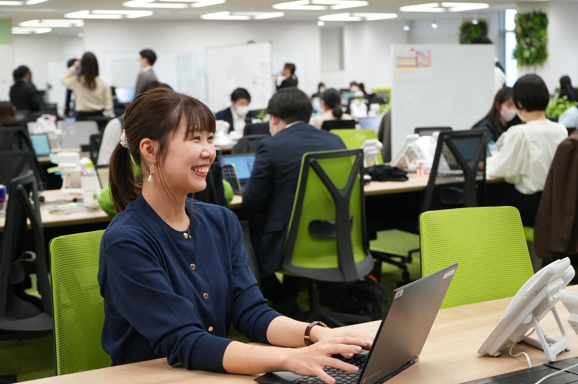 東京本社です、移転したばかりです。入社後は新しいオフィスで働くことが出来、仕事のモチベーションに繋がります♪