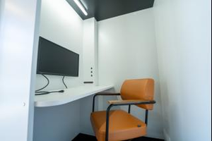 コロナ禍におけるオンライン会議の増加により社内/社外とのMTGのときにメインで利用するエリアです。 個室空間を演出するスマートガラス仕様になっているので集中力を高める効果もあります。
