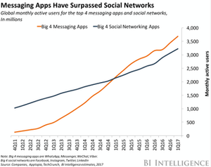 企業SNSよりメッセンジャーの利用率が高いというデータ。企業のメッセージングアプリでの時代!