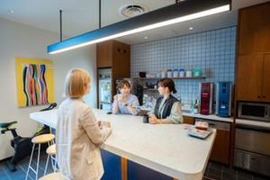 新しいオフィスにはキッチンカウンターが完備されています。メンバーが息抜きにコーヒーを淹れたりしています。