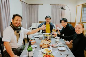 2023年3月箱根への出張。仕事も行いながら、ご飯を囲みながら楽しい時間も大切にする。なんと料理はCEOが作ることも!メンバー間で協力しながらご飯を作っています。