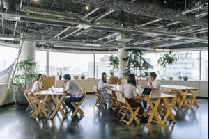 オープンスペースを活用して、時にはリラックスしながら仕事に励んでいます