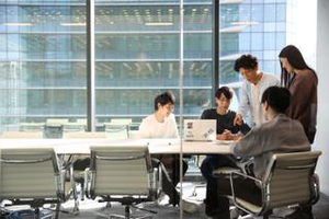 本社は、グランフロント大阪タワーB 18F。社内にはWeb制作・マーケティング、システム開発、セールス、コーポレートと全ての部署がワンフロアで仕事をしており、それぞれ意見を共有しながら迅速に改善をする等、自社サービスを提供する事業会社としての強みを活かし、フラットな組織で迅速な意思決定を行い運営しています。