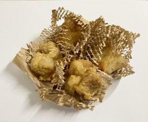 紙が立体化することで全方位から唐揚げを包む