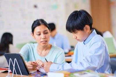 レベルがあがるとノンフィクションで時事問題にも取り組み、さらに読解力をつけていきます。本日のトピックでバイリンガル教師と英語で雑談する様子。