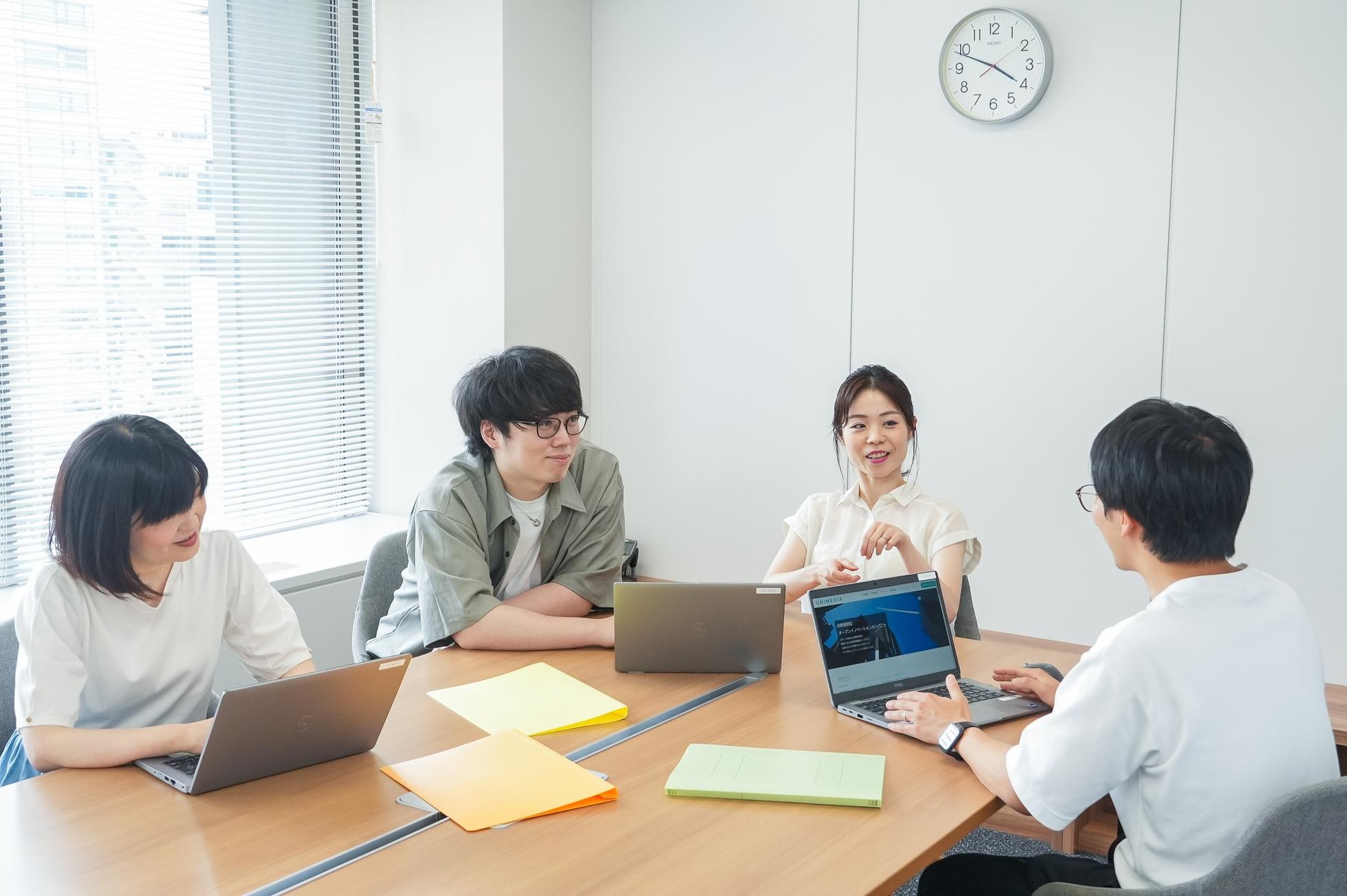エントランスを抜けると会議室があります。移転して間もなく在宅ワークに移行したためなかなか賑わうことはなく残念ですが、たまに出社日がかぶった仲間同士でささやかにわいわいしています(笑)