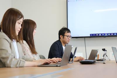エントランスを抜けると会議室があります。移転して間もなく在宅ワークに移行したためなかなか賑わうことはなく残念ですが、たまに出社日がかぶった仲間同士でささやかにわいわいしています(笑)