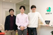 左から順に:取締役CFO 平岡・代表取締役 佐藤・取締役COO 山本