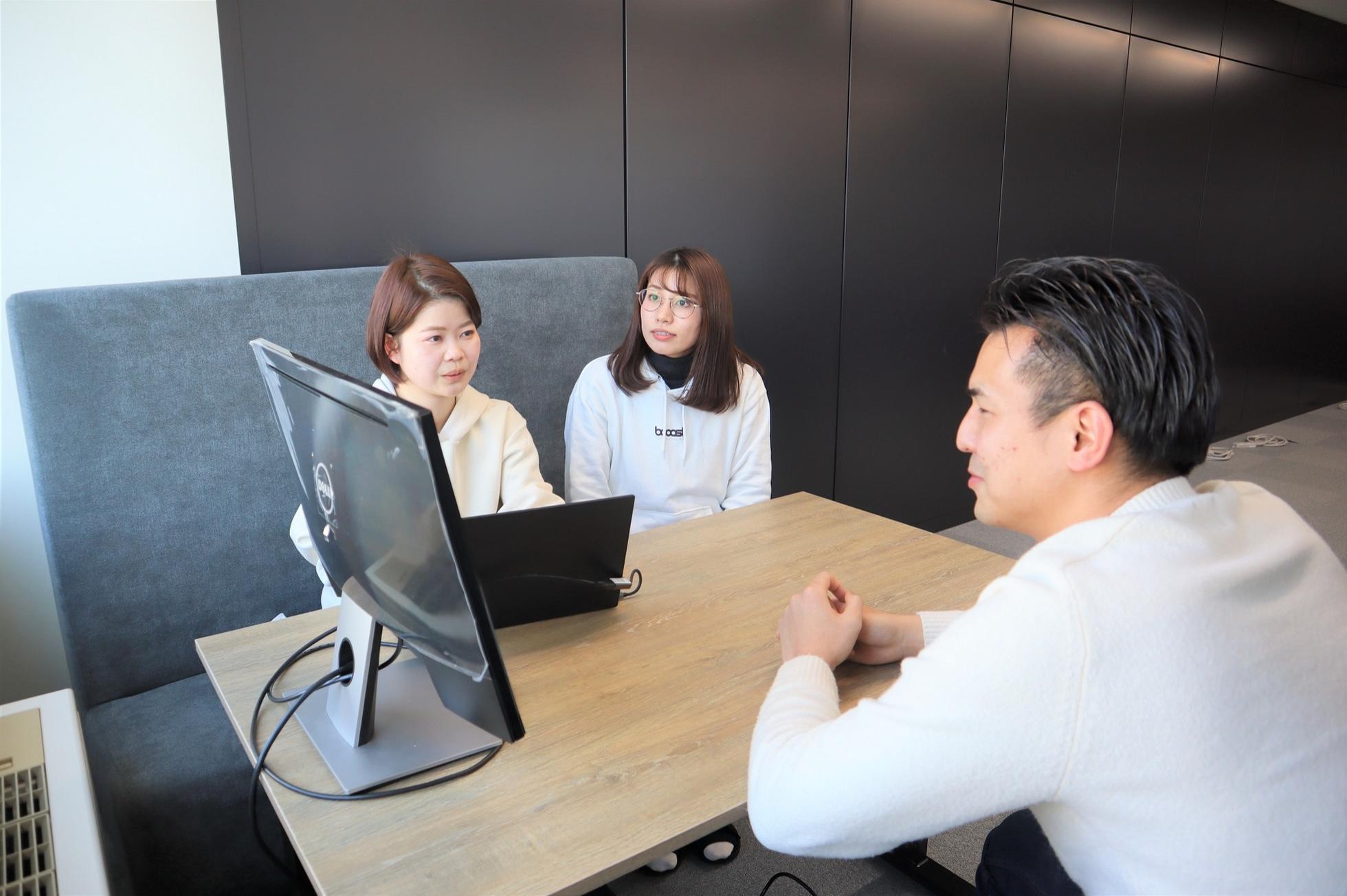 カジュアルな情報交換から真剣なディスカッションまで、社内ではコミュニケーションを積極的にとることで、日々変化のある業界知識を共有し合っています。サステナ商品の情報共有も盛んで、日々のファッションにサステナブルを取り入れている社員も多くいます。