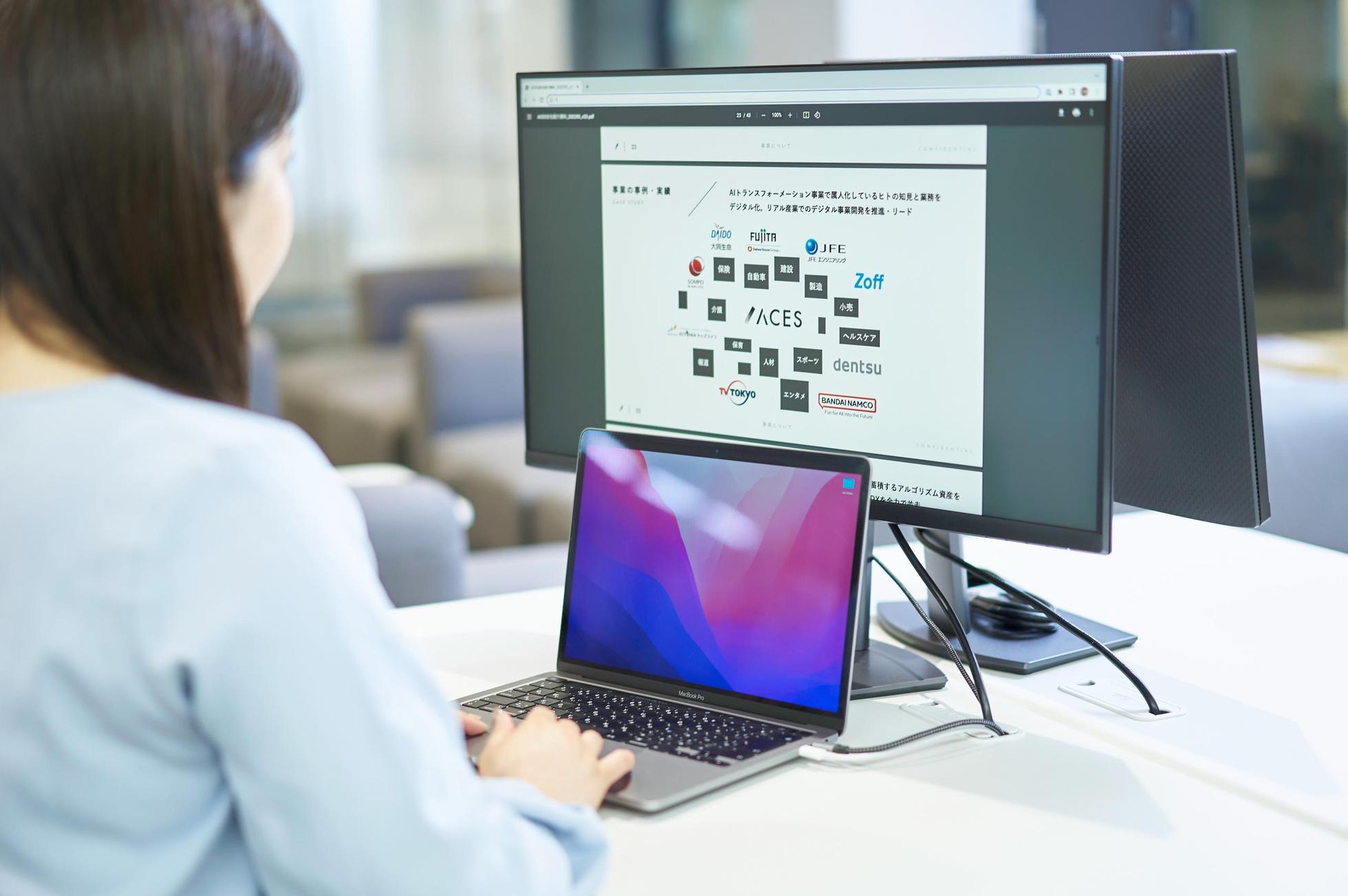 ACES(エーシーズ)は「アルゴリズムで、社会はもっとシンプルになる。」をミッションに掲げる、東大松尾研究室発のAIスタートアップです。 アカデミアにおける知見を活用し、業界横断的なビジネスシーンをデジタル化/定量化することで、「複雑・非効率・非合理」がないシンプルで皆がいきいきと生きられる社会を実現していきます。 現在は、主に以下2つのサービスを展開しています。 【DXパートナーサービス】 保険、自動車、建設、製造業、小売など、さまざまな産業において最先端のAI技術を用いたDXプロジェクトの推進を行う事業です。 社内で開発を進めるAIアルゴリズムやシステムの開発を通して、クライアント企業のDXや新規事業立ち上げを共同で遂行します。 【AIソフトウェアサービス】 2022年4月にブラックボックス化しがちな商談や会議内容を可視化し、営業組織の強化を支援する営業DX×AI SaaS「ACES Meet」(https://meet.acesinc.co.jp/)を正式リリースいたしました。 今後、複数のSaaSプロダクトの開発・リリースを進める方針です。