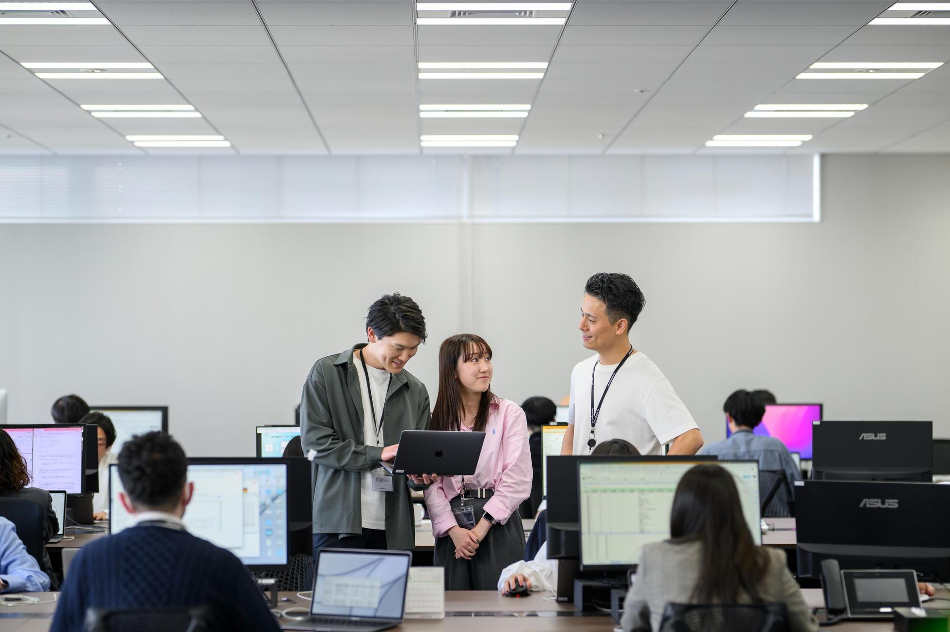 こだわりのオフィス勤務。チームの目標に向かい、コミュニケーションを欠かさない。