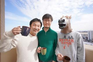 メンバー同士ラフに交流(顔出しNGなので、覆面被ってるウマGです…笑)
