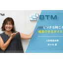 はじめまして! BTMで採用を行っております、人事の佐々木と申します。 私は新卒でSESの営業職としてBTMに入社いたしました。 有難いことに「新人賞」なども頂き、営業の仕事自体にやりがいを感じておりましたが、 フロントとしてエンジニアの方々と関わる中で、より一層働きやすい環境を 自社の中で整備していきたいと感じ、人事部を拡大する際にお声をいただき 人事部へ異動し現在にいたります。 0からBTMで人事としてのキャリアをスタートいたしましたが、 裁量権を与えていただき、現在は採用~社内活動まで幅広く担当しております! BTMの魅力は「年功序列」などではなく、未経験だとしても意欲があれば 積極的に様々なことを経験させてくれる、機会提供の多さだと感じております。 また地方創生に根差しており、地方の方々へも技術・機会の提供をしていける… そういった貢献性の高い弊社Missionに共感を感じていただけると嬉しく思います。 これから、より一層成長・拡大していくBTMで、 一緒に組織作りや採用・広報など幅広く一緒に働いてくださる仲間を探しております! ぜひ一度ざっくばらんにお話の機会をいただけますと幸いです♪ 皆さんとお話ができるのを、楽しみにしております。