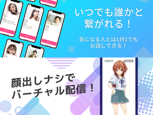 マッチ不要で気になった人とお話しできるアプリ、バーチャル配信アプリを運営しています!