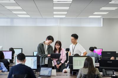 こだわりのオフィス勤務。チームの目標に向かい、コミュニケーションを欠かさない。