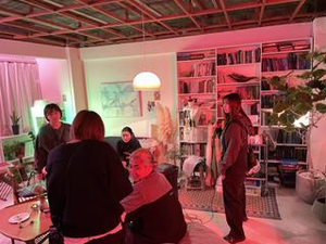 ラウンジを使った社内発表会後の懇親イベント。この日は社長自ら調理したカレーがメインディッシュ。