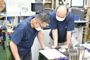 時には先輩社員に相談して確認することも。分業制ではないですがお互いに助け合いながら仕事を進めていくのもミヨシの技術職の魅力です。