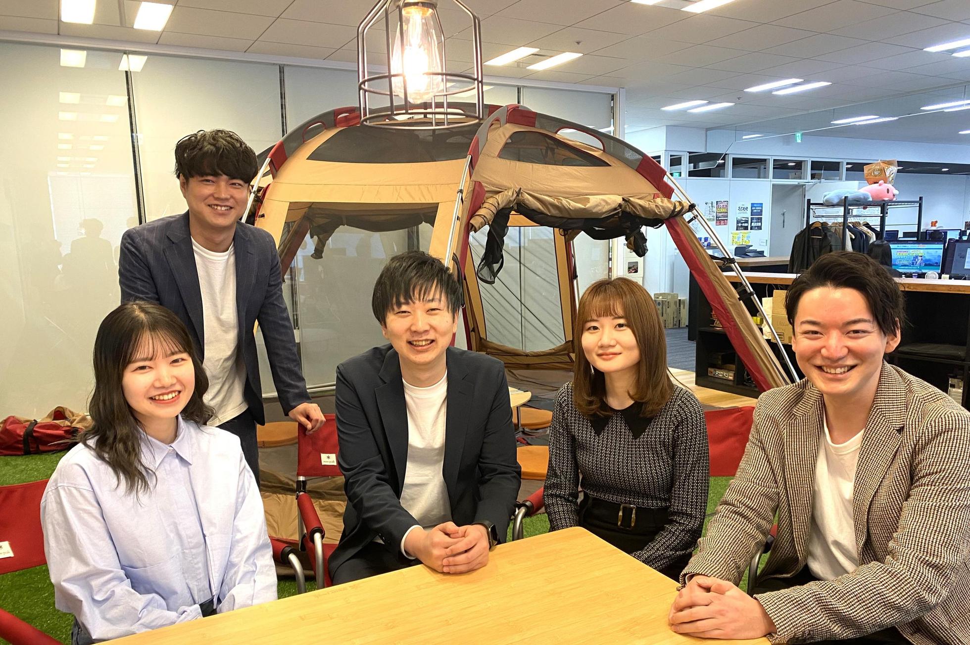 フロア内にキャンプエリアがあり、ごろ寝したりカジュアルなミーティングに使ったりできます!昼寝すると最高です笑