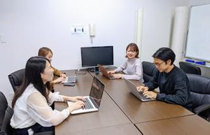 落ち着いた雰囲気のミーティングスペースでは、自社メディアの企画会議などを行っています。