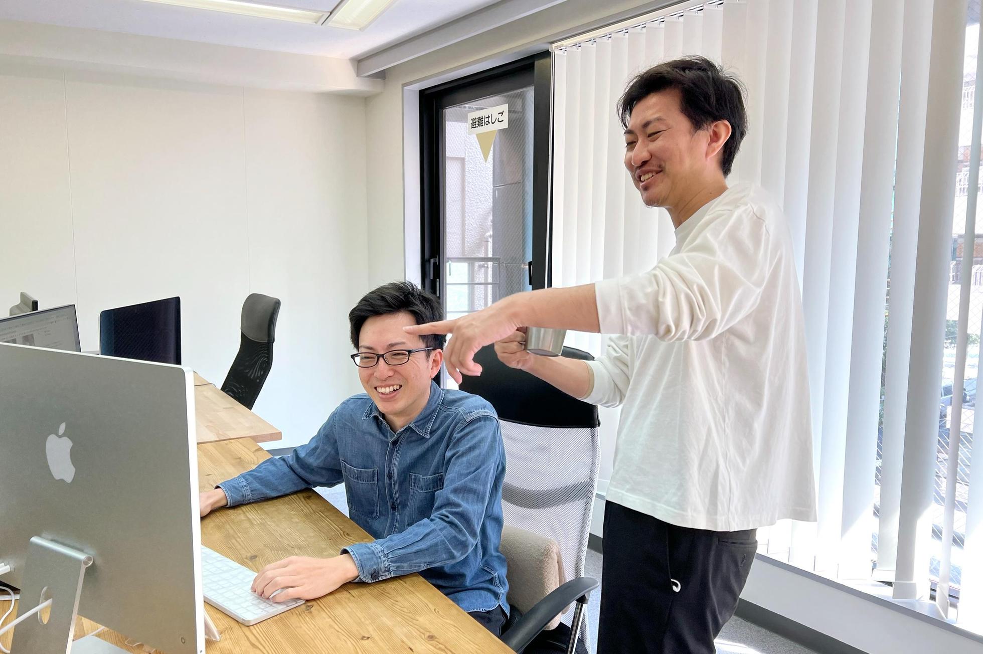 新たに入社したエンジニアには、スキルに応じて先輩がレクチャー。現状のスキルレベルを把握した上で、「できること」を広げ、少しずつ新しいことに挑戦できる環境を用意しています。