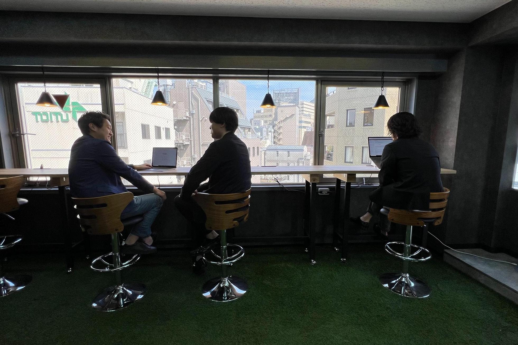 フリーデスクとなっていて、Mtgブースやカウンター席も用意されているので、各自好きな場所で仕事に取り組むことが出来まます。