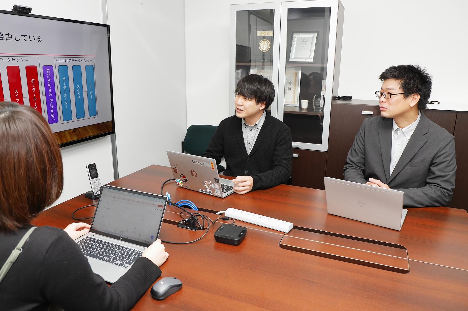 当社のサービス・製品の開発などを行っています。一方で、当社はネットワークソリューション事業でネットワークの設計や構築、運用の支援を行っていますが、同時にコンサルテーションも実施しています。この過程で出たアイデアをソフトウェアとしてお客様と一緒に形にしていく開発も行っています。